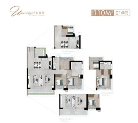 分布在7栋的建面约138-165㎡四房两厅两卫户型,是力诚榕诚湾的旗舰产品。43层超高层搭配2梯3户的低密设计,保证了居住的舒适度和私密性。作为准现房,其优势明显,所见即所得,让购房者更加放心。空间开阔通透,部分户型可享受无敌河景视野,让居住体验达到巅峰。这款户型专为三代同堂或二孩家庭设计,充分考虑了多代人共同居住的需求。主卧预留了充足的活动空间,可设置梳妆台、阅读区等,满足主人的个性化需求。老人房靠近卫生间,方便夜间使用,体现了对老年人的关怀。儿童房设计充满童趣,为孩子提供了快乐的成长空间。宽敞的客厅和餐厅,是家庭聚会的核心区域,承载着无数的欢声笑语和温馨回忆。